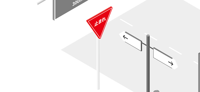 主に交差点や分岐点に設置され、施設などの目的地の方向を示すサインです。矢印で示すのが一般的ですが、表示板の向きそのもので方向を示す矢羽根型も多くみられます。